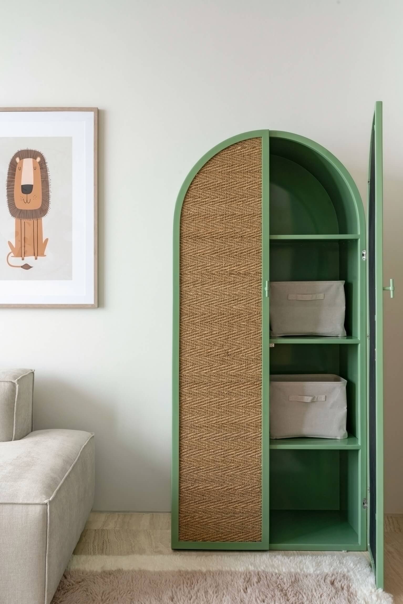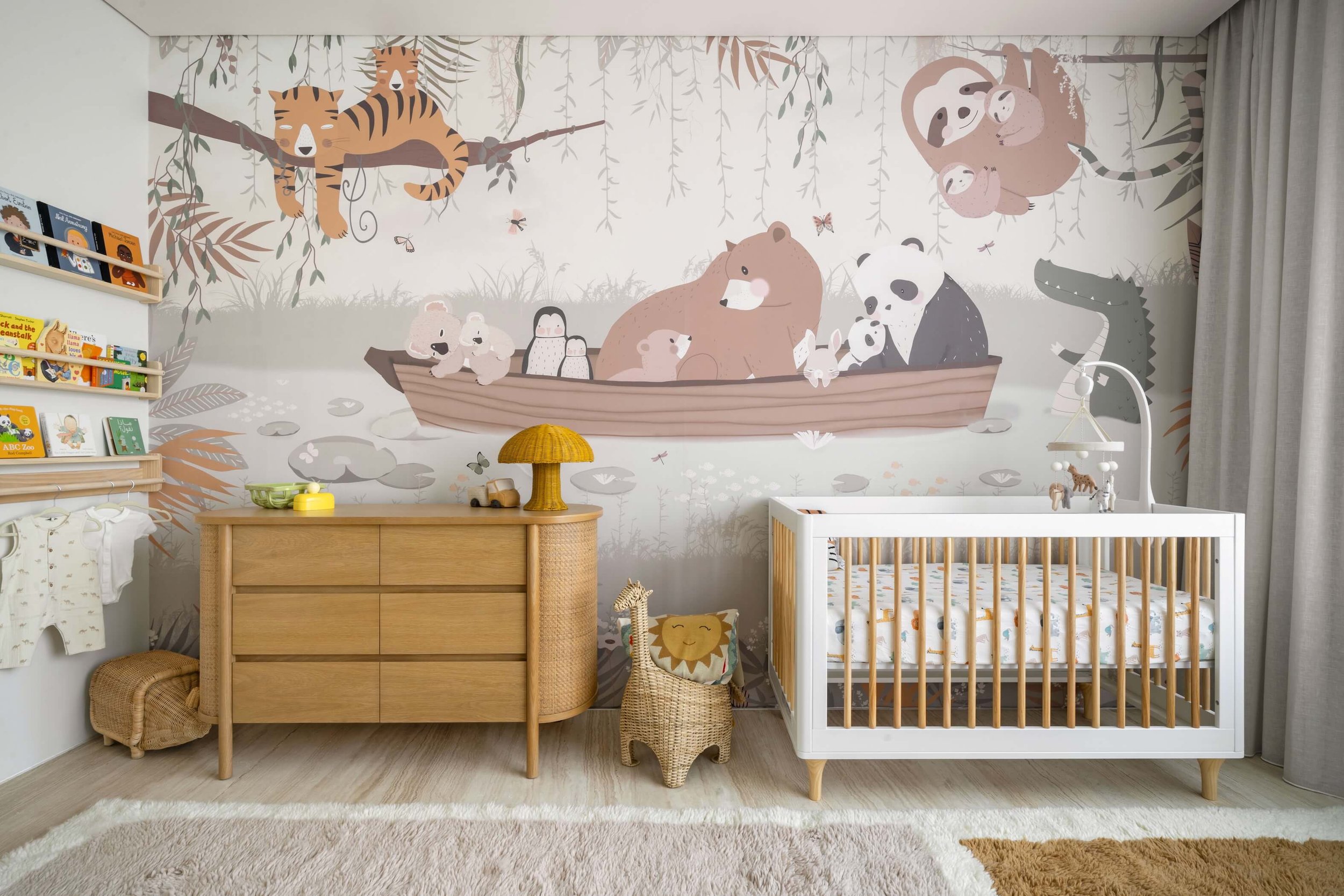 Designed for a baby boy, this nursery was conceived as a calm and nurturing environment with moments of gentle playfulness. The intention was to avoid overly vibrant or overwhelming tones, instead creating a space that feels soft, comforting, and subtly imaginative.