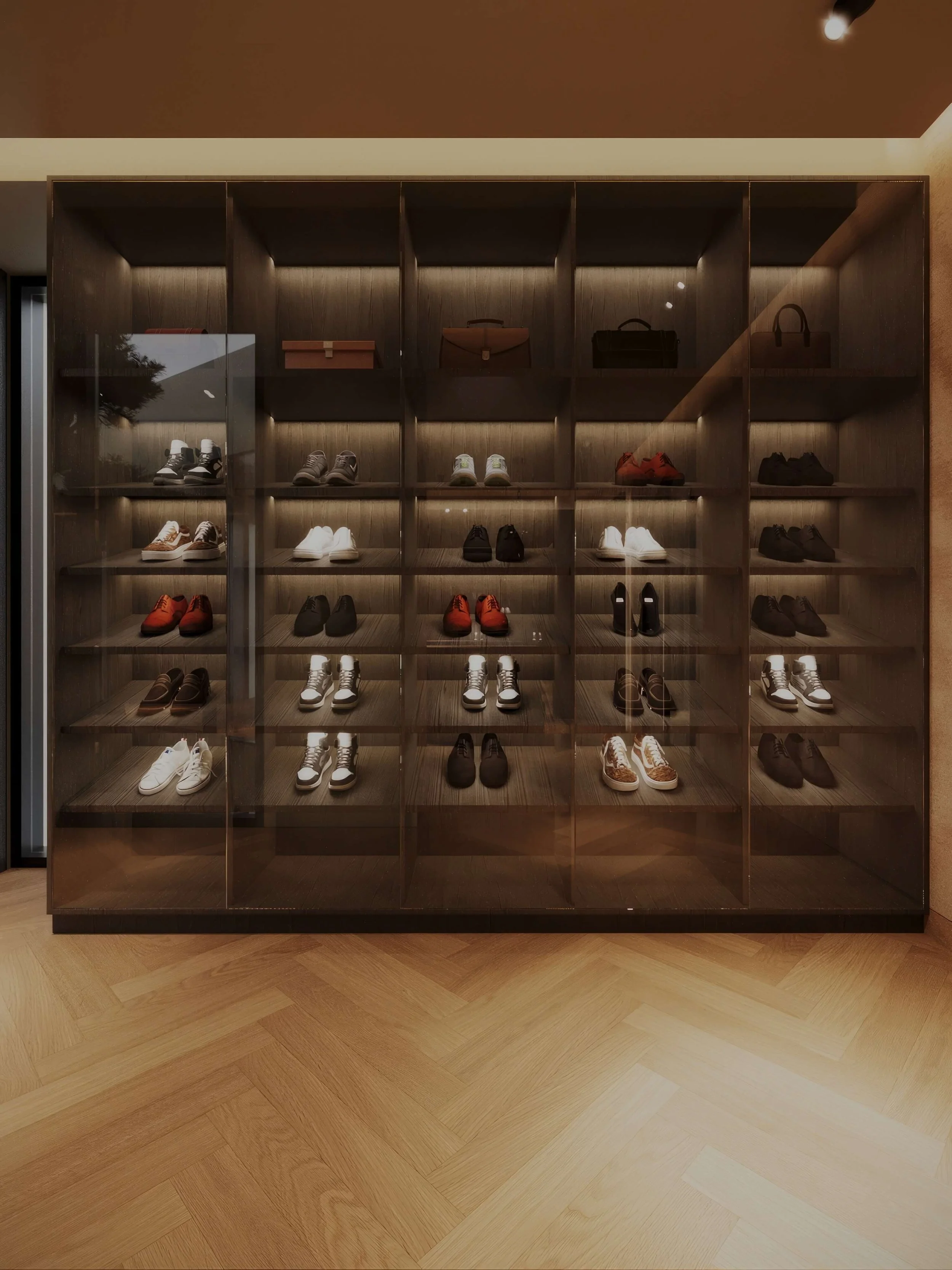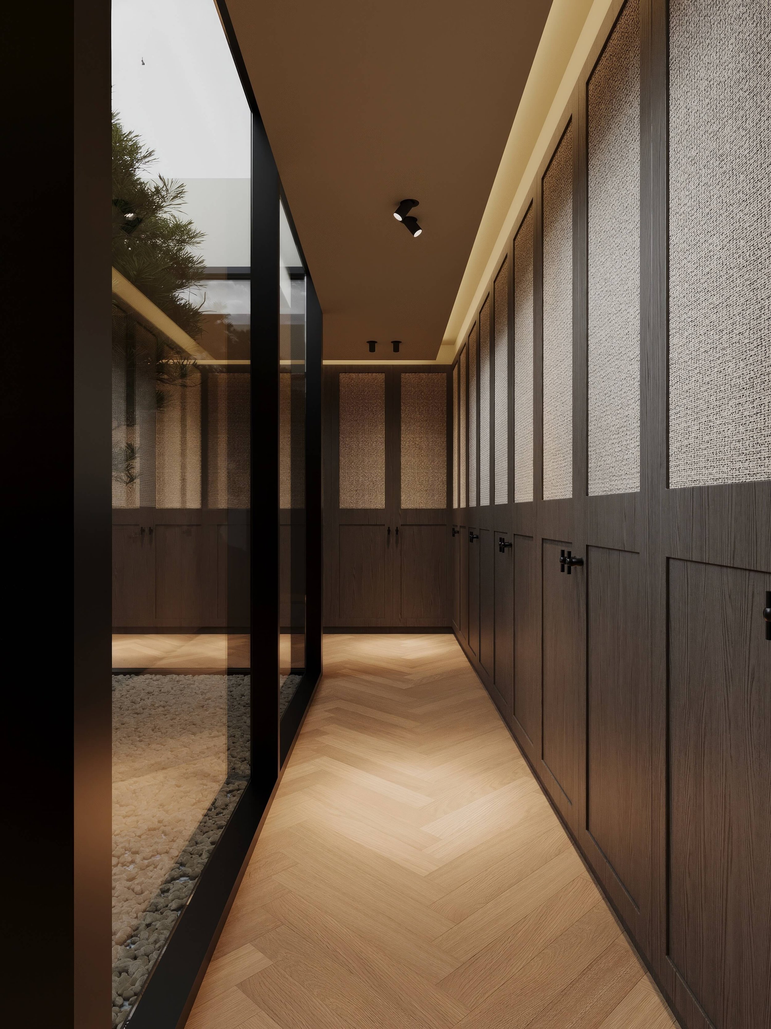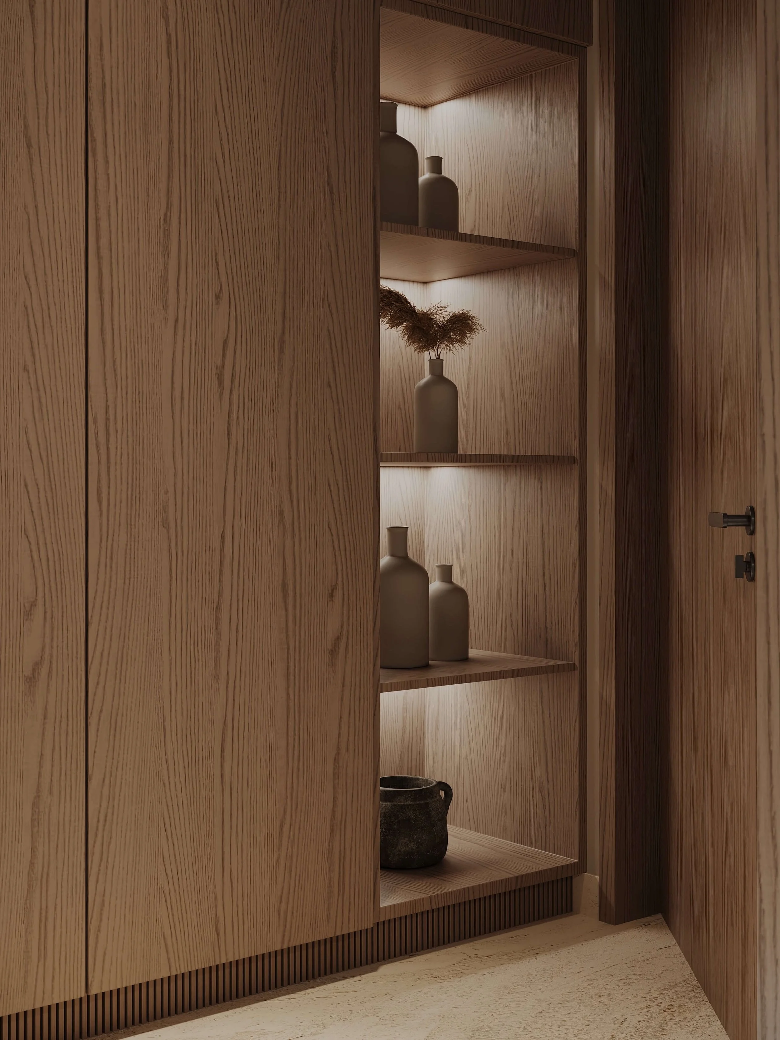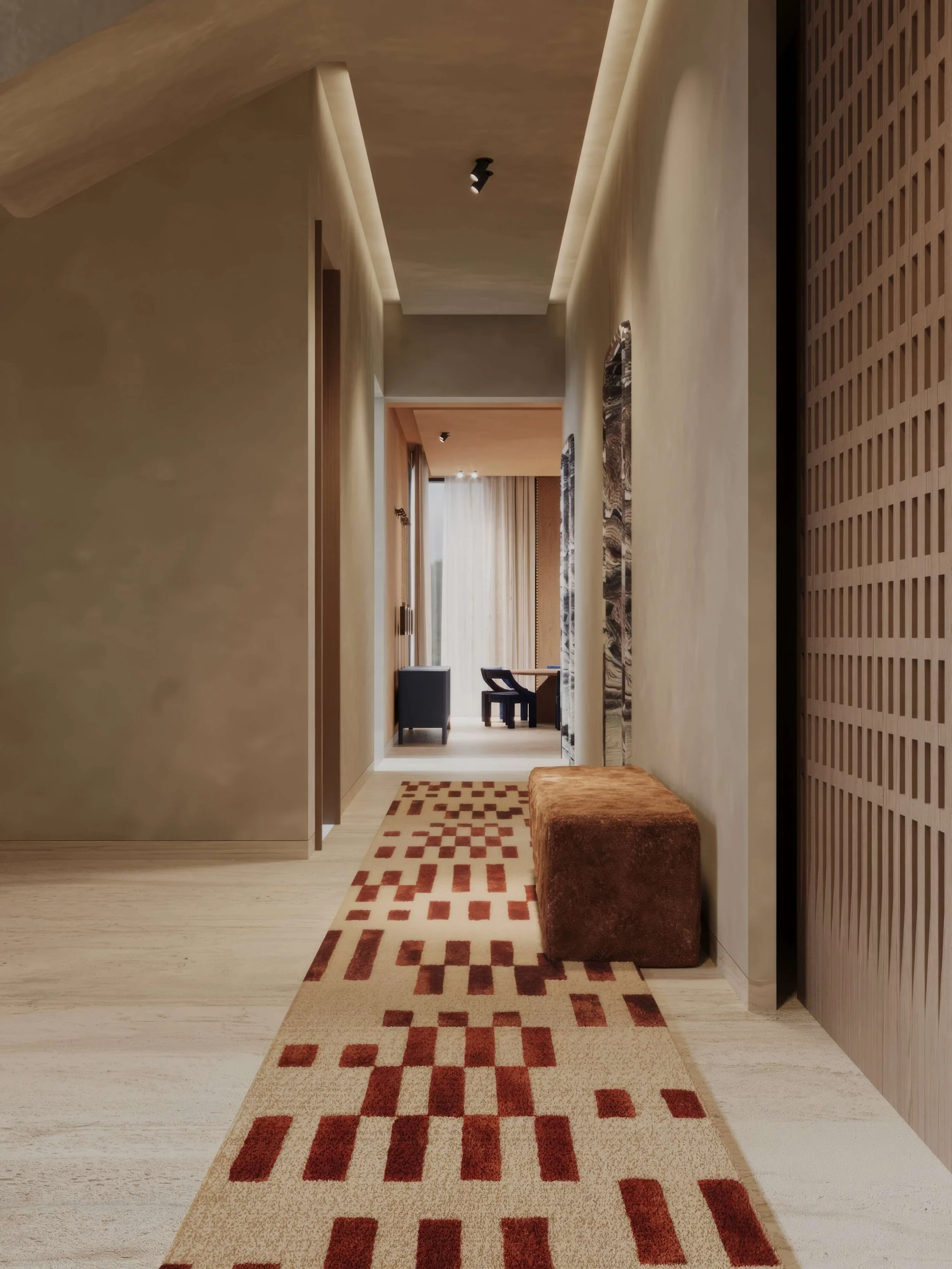This private residence was built from scratch, offering the opportunity to shape interiors with a strong and expressive material identity. While the architectural layout was predetermined, the interior design sought to introduce individuality and depth within each space.