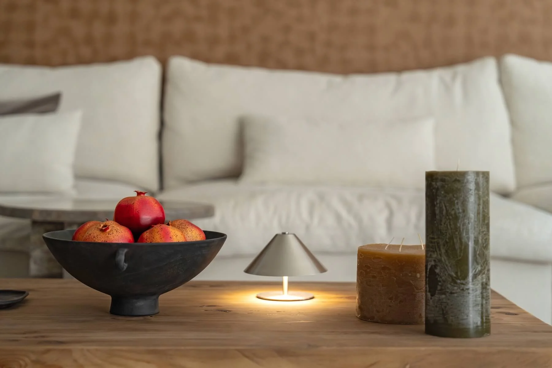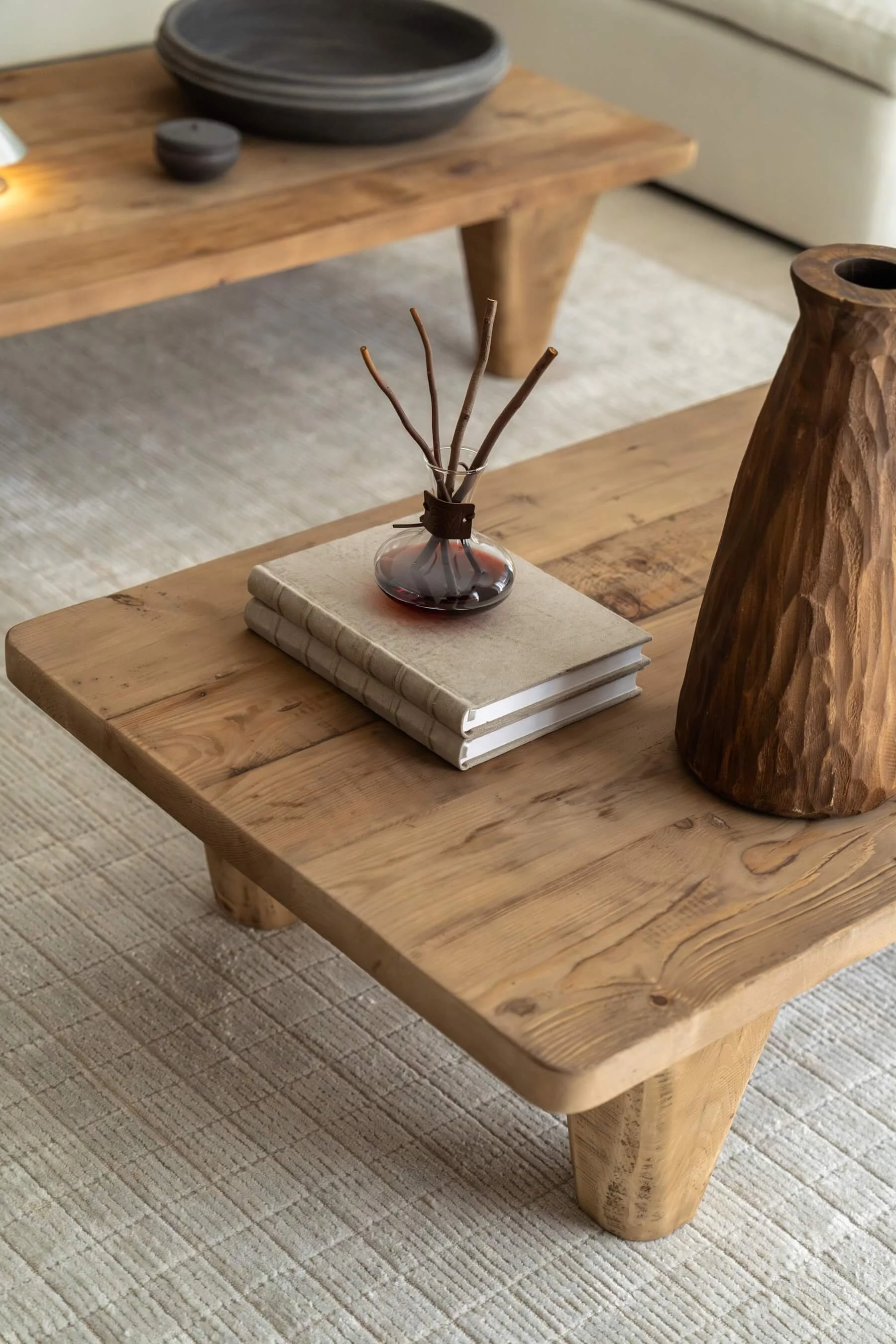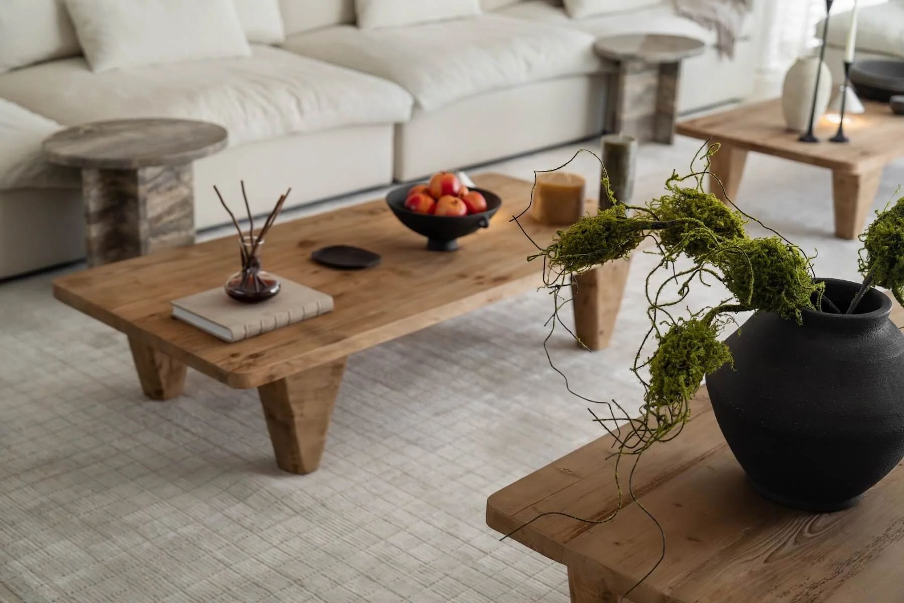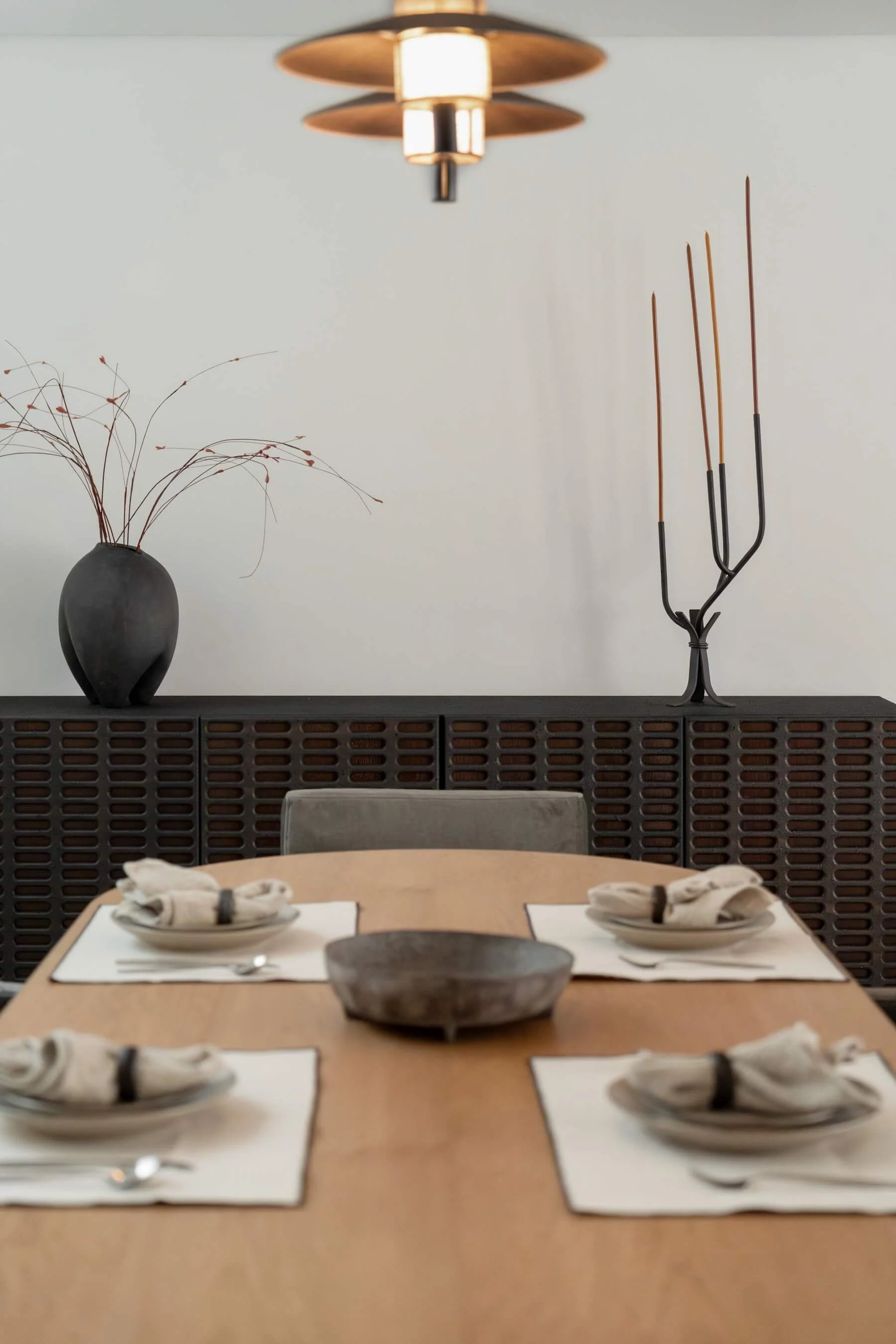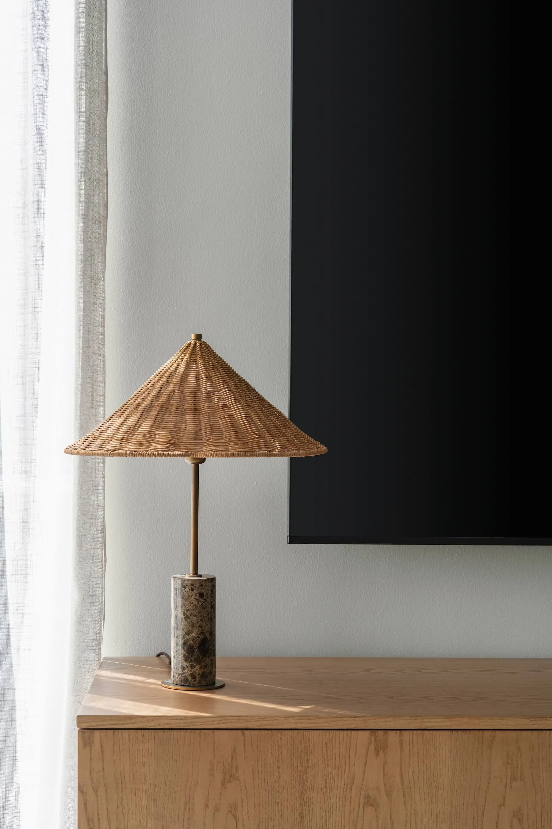The result is a relaxed and elegant home where neutral tones, natural textures, and considered design come together to create a peaceful everyday environment.
