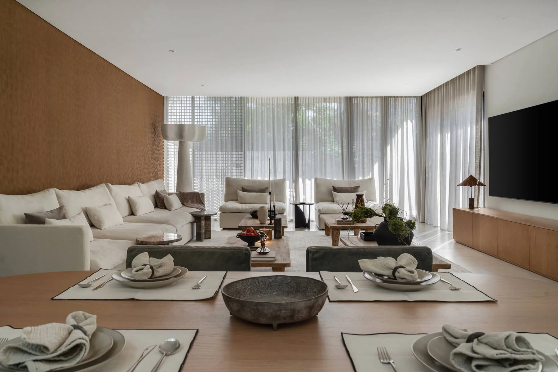 This furnishing project in Umm Suqeim focused on transforming a rental villa into a calm, neutral retreat. The client sought a nature-inspired atmosphere and gave SETE Interiors full creative freedom to curate the interior.