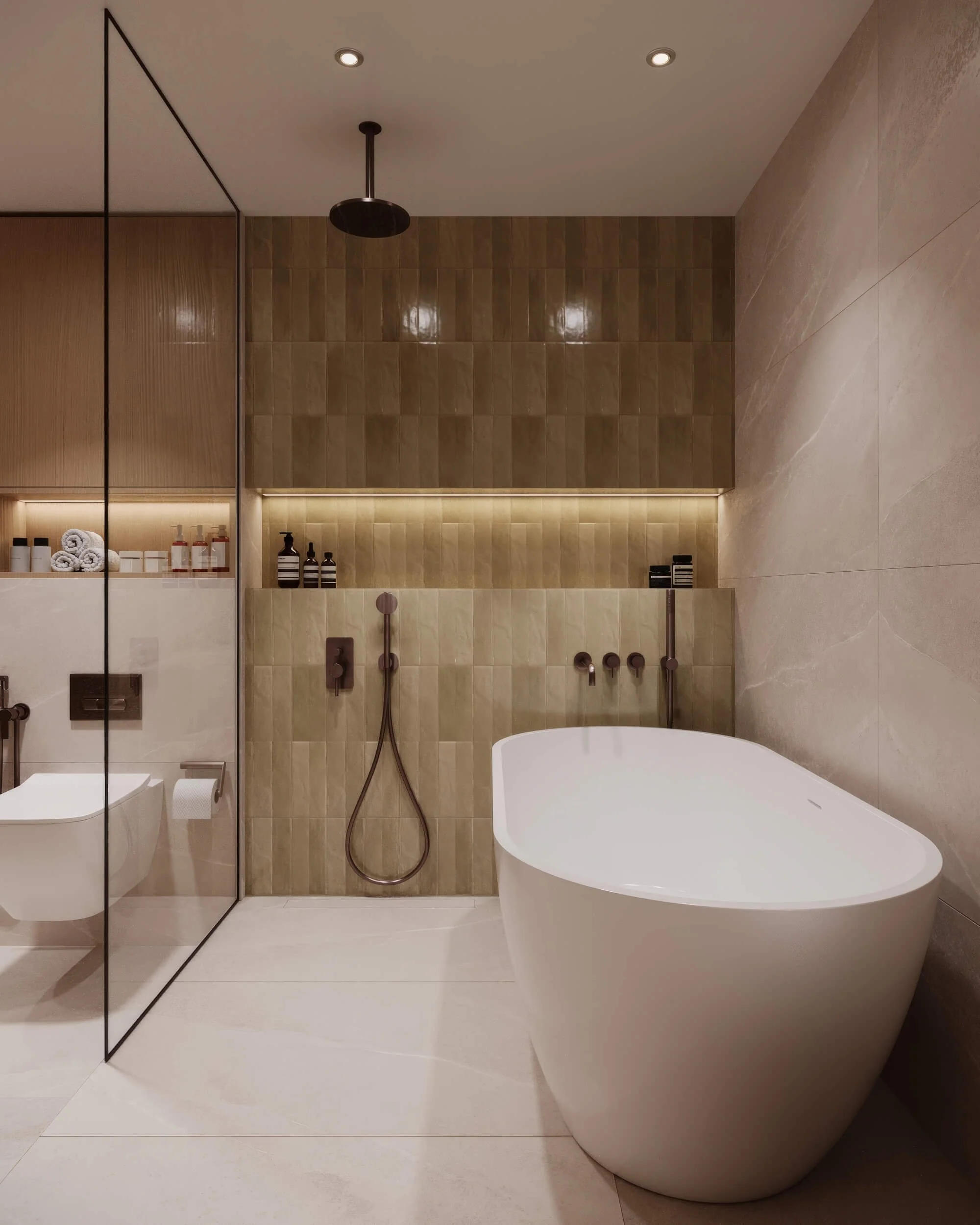 The redesign introduced a carefully balanced 1970s influence through layered materials and bespoke detailing. The kitchen became a focal point, featuring a mix of subway tiles in three tones, paired with dark wood elements to ground the palette. Limewash finishes were applied across walls and ceilings, softening the space and creating a seamless, enveloping atmosphere.